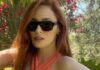 Göğüs dekoltesiyle öne çıkan Talu’nun ip detaylı bluzuyla pozuna takipçileri hayran kaldı.