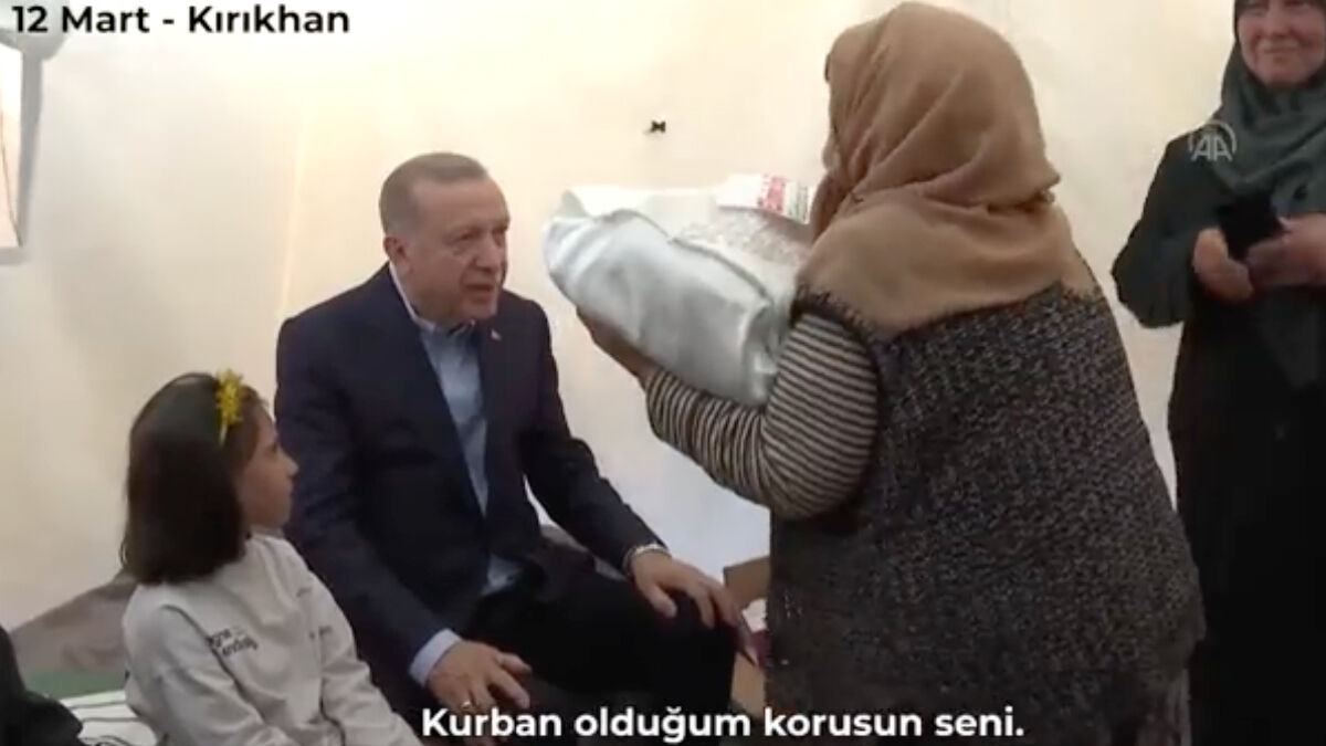 “Dün Kırıkhan ziyaretimizde sohbet ettiğimiz Çeşminaz teyze, Cumhurbaşkanımızla görüşürse buna çok sevineceğini söylemişti. Bugün Sn. Cumhurbaşkanımızı çadırında ağırladı.”
