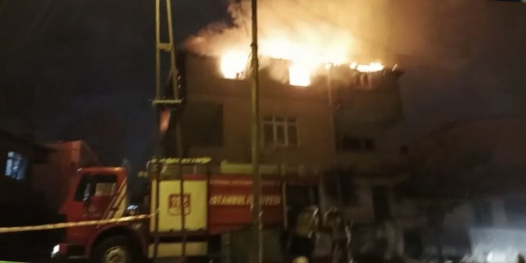 Ümraniye’de 3 katlı binanın çatısı ile altındaki daire alev alev yandı. Yangın, itfaiye takımlarınca söndürüldü.
