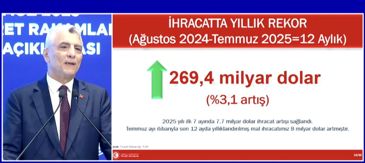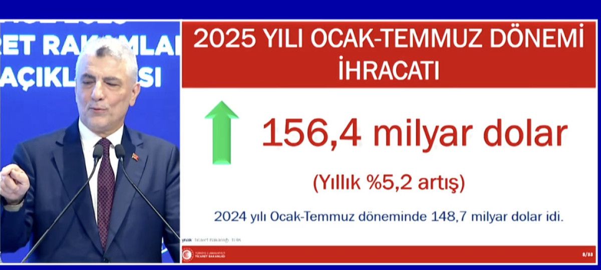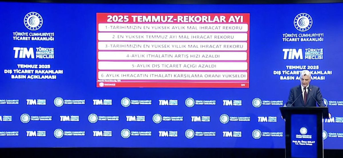 Ticaret Bakanı Ömer Bolat, 2025 yılı Temmuz ayı ihracat rakamlarını Samsun’da düzenlenen bir toplantı ile duyurdu.