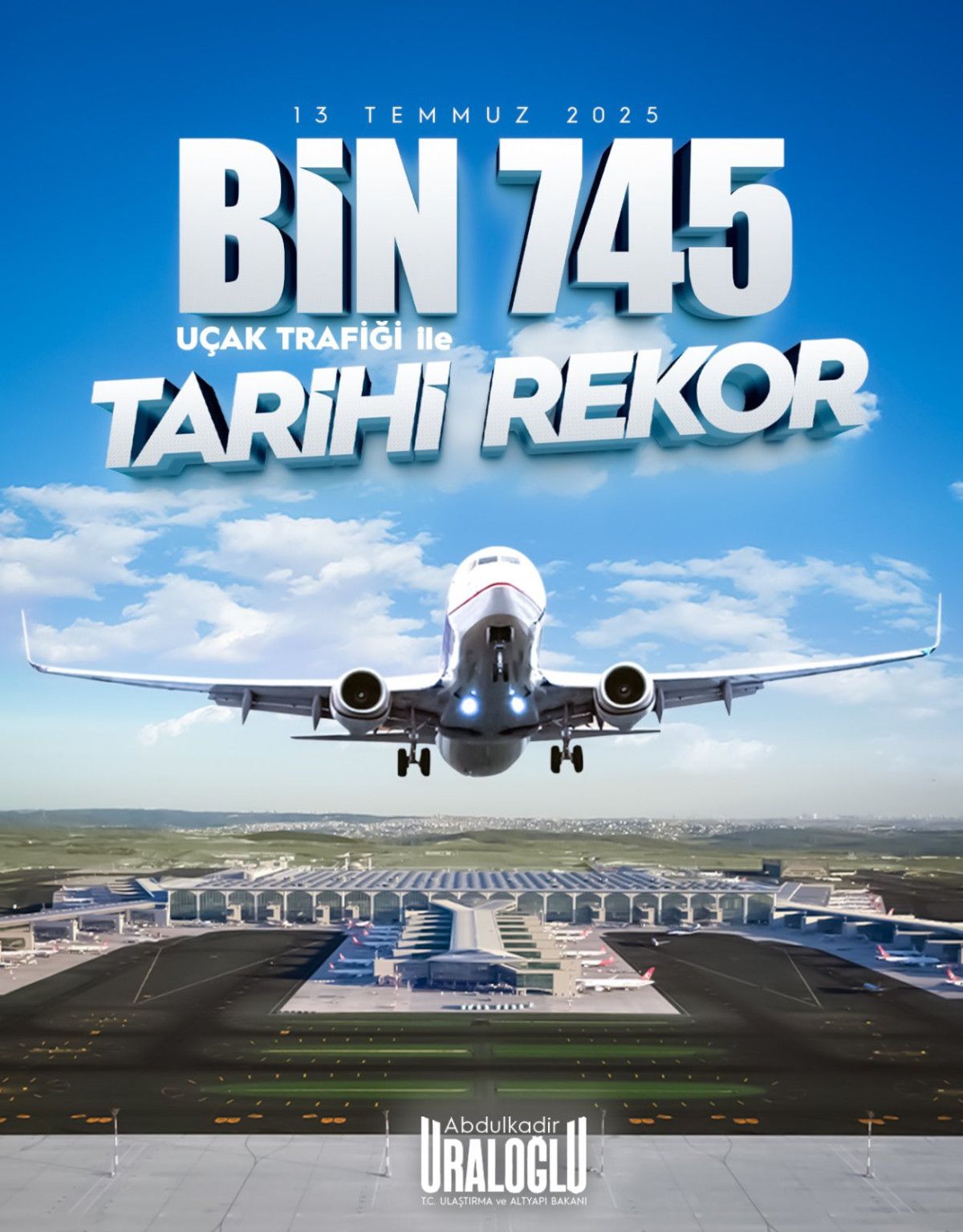 Bakan Uraloğlu, “Bin 745 transit uçuşla Türk hava sahasında tüm zamanların en yüksek günlük transit uçuş sayısına ulaştık. 6 bin 110 uçuş trafiği ile toplam uçak trafiği rekorumuzu tazeledik.” dedi.