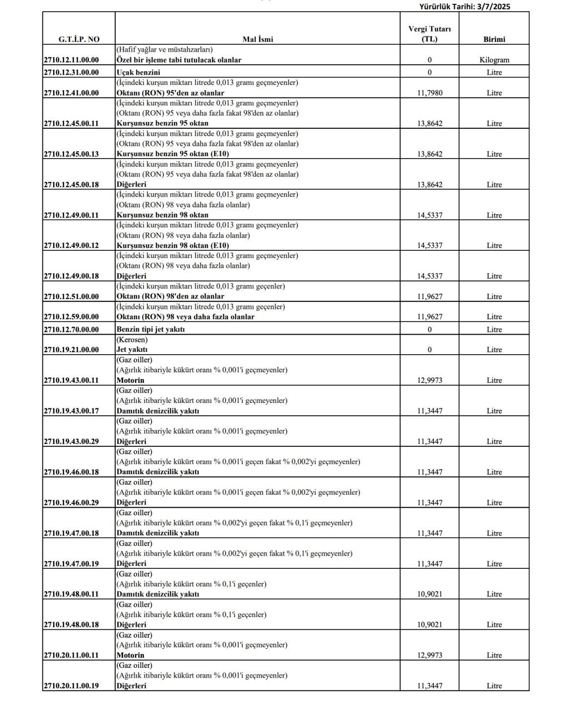 Öte yandan, akaryakıt, tütün ve alkoldeki yeni maktu ÖTV tutarları, GİB’in internet sitesinde yayımlandı.