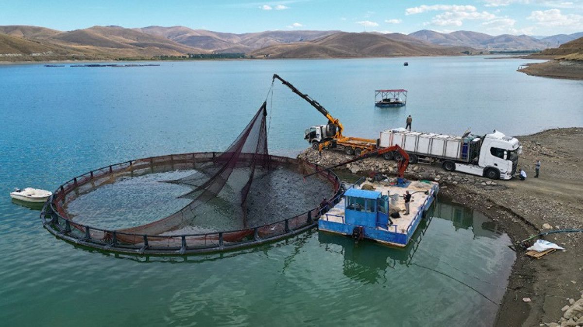 Bayburt’taki Demirözü Barajı’nda yetiştirilen ve çoğunluğu Rusya’ya ihraç edilen Türk somonlarında hasat dönemi başladı.