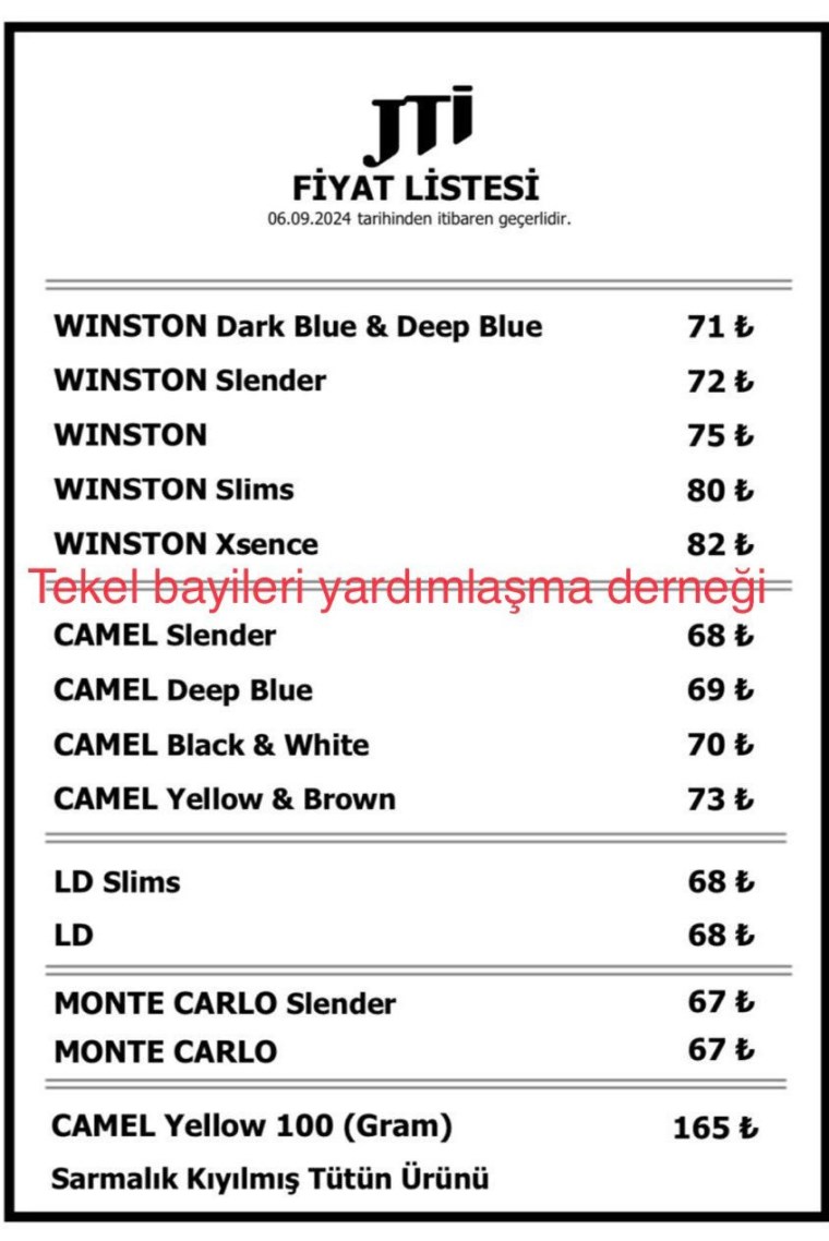ekel Bayileri Yardımlaşma Derneği Başkanı Erol Dündar, JTİ sigara grubuna da zam geldiğini sosyal medya hesabı X’ten “Jti #sigara grubuna #ZamGeldi zam yağmuru devam ediyor” sözleriyle duyurdu.