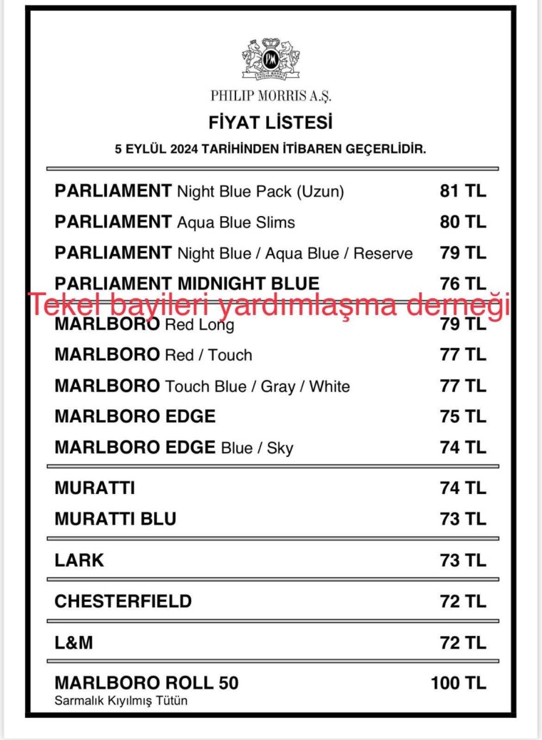 Buna göre, bu sigara grubunda en düşük fiyat 67 TL ve en yüksek fiyatı ise 165 TL oldu. Zamlı fiyatlar 6 Eylül’den itibaren geçerli olacak.