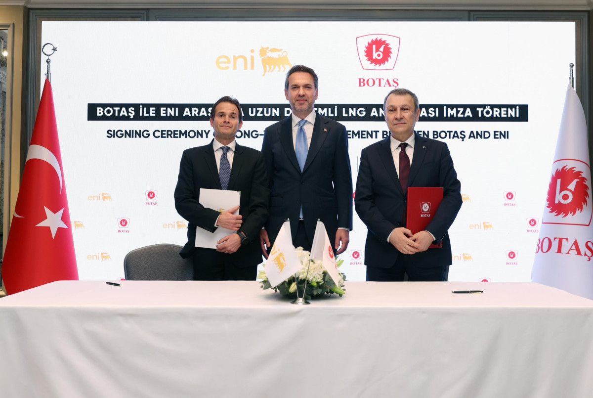 Anlaşmalara ilişkin imzalar, Bakan Bayraktar refakatinde, BOTAŞ Genel Müdürü Abdulvahit Fidan ile SEFE Başkan Yardımcısı Jean Manuel Conil-Lacoste ve ENI Küresel Doğal Gaz ve LNG Portföy Direktörü Cristian Signoretto tarafından atıldı.