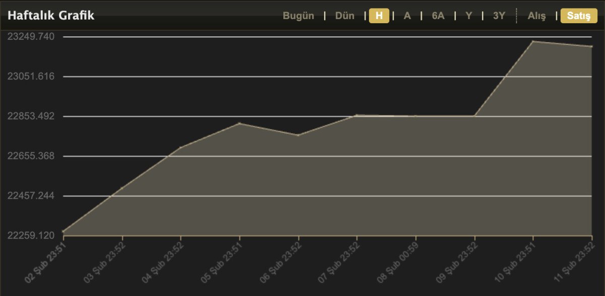 Altın fiyatları yükselirken Ocak 2025 itibarıyla net 22 bin 4 lira asgari ücretli bir kişinin maaşı ile 23 bin 200 lira ile bir Cumhuriyet altın alıyor olmasına dikkat çekildi.