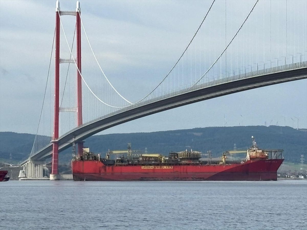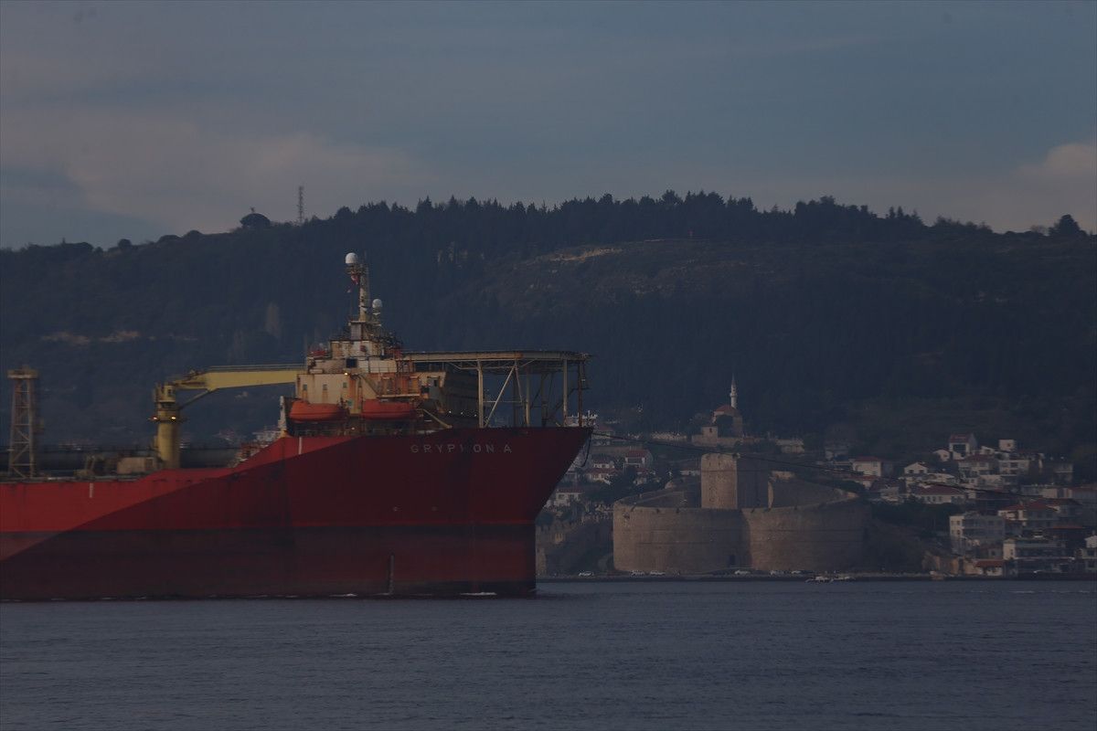 İngiltere bandıralı “Gryphon A” adlı boş doğalgaz tankeri, Çanakkale Boğazı’ndan geçiş yaptı.