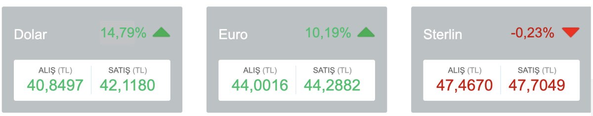 Dolar yüzde 14,79 artarak 42,1180 lira oldu.