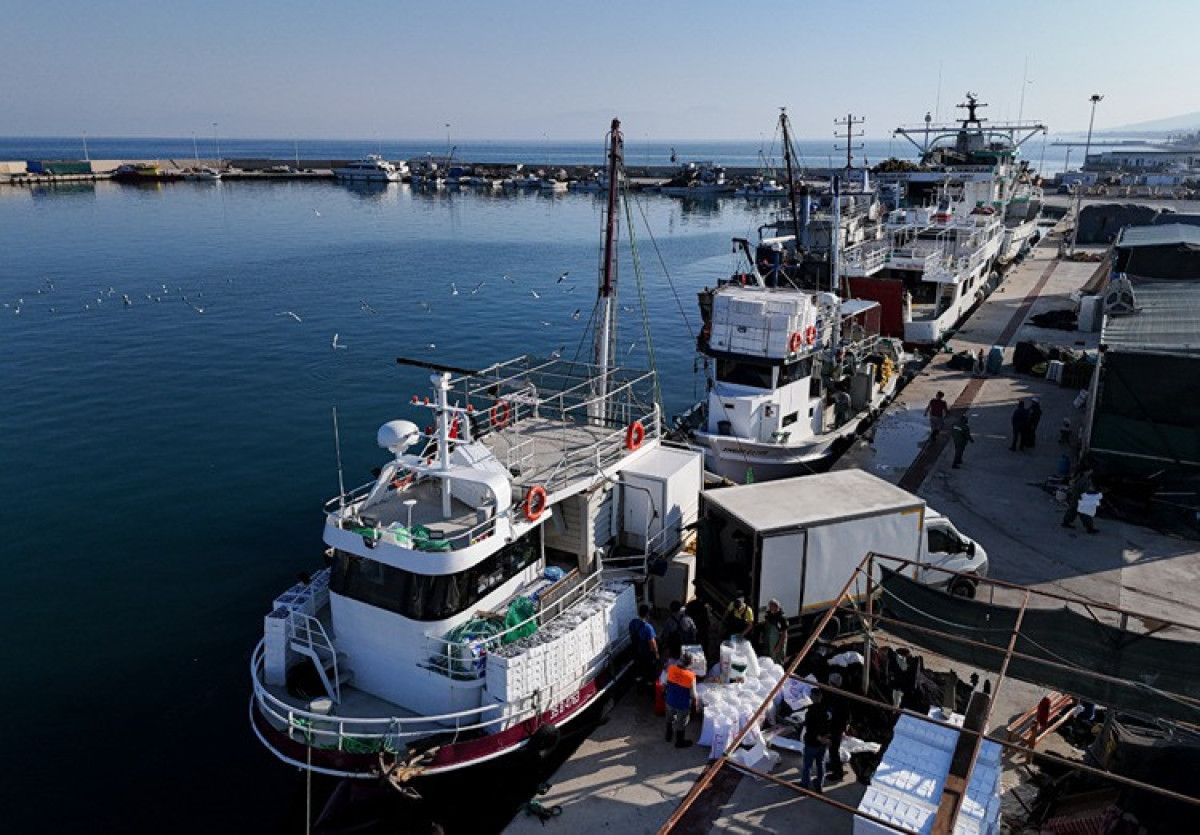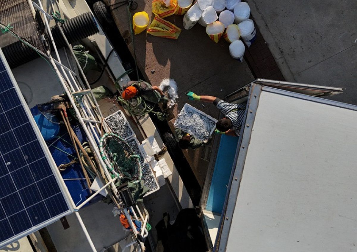 İzmir’deki Güzelbahçe Balıkçı Barınağı’na yanaşan balıkçılar, tuttukları sardalyaları burada kamyonlara yükleyerek İzmir başta olmak üzere birçok kente gönderiyor.
