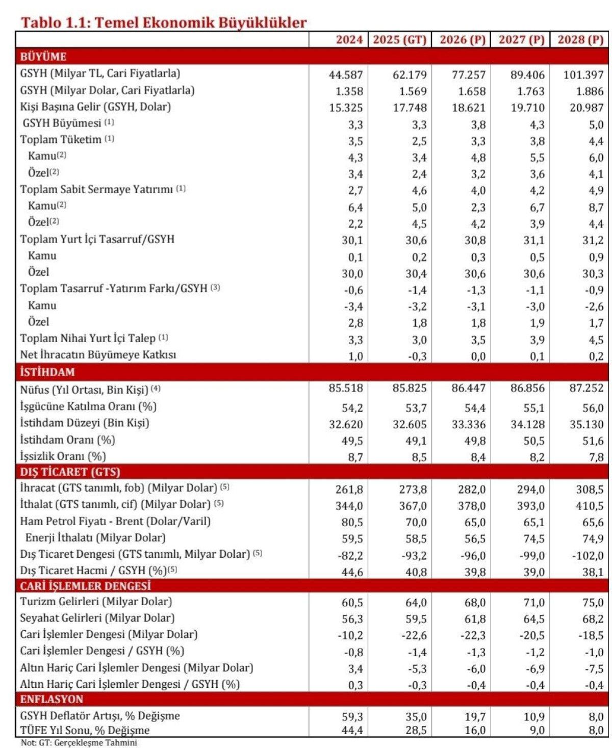Cumhurbaşkanı Yardıncısı Cevdet Yılmaz’ın paylaştığı ekonominin üç yıllık yol haritasına göre Temel Ekonomik Büyüklük hedefleri şöyle: