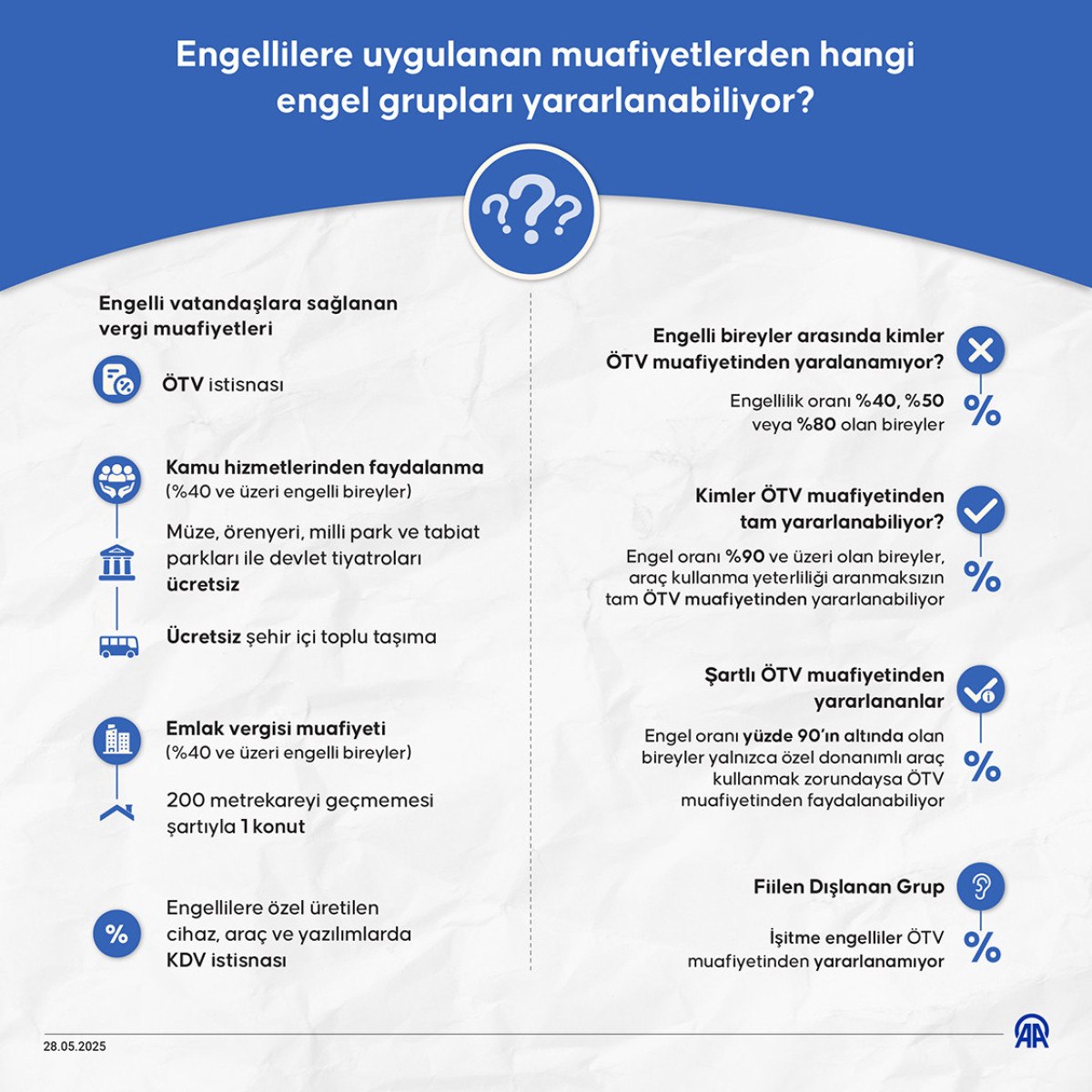 Engel oranı yüzde 90’ın altında olan bireyler ise yalnızca özel donanımlı araç kullanmak zorundaysa ÖTV muafiyetinden faydalanabiliyor. Bu kapsamda genellikle ortopedik engelliler yer alıyor.