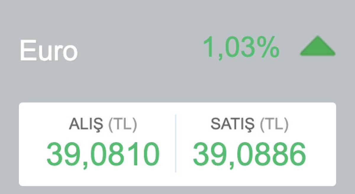 Euro, bugün alımda 39,0810 lira ve satışta ise 39,0886 lira değerine ulaştı.