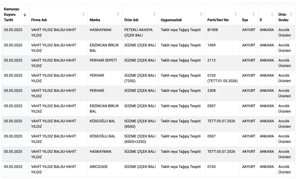 Taklit veya Tağşiş Yapılan Gıdalar (Aynı Değeri Taşımayan Madde Eklenmesi) listesine 35 ürün eklendi ve burada da toplam ürün sayısı 1.234’e çıktı.