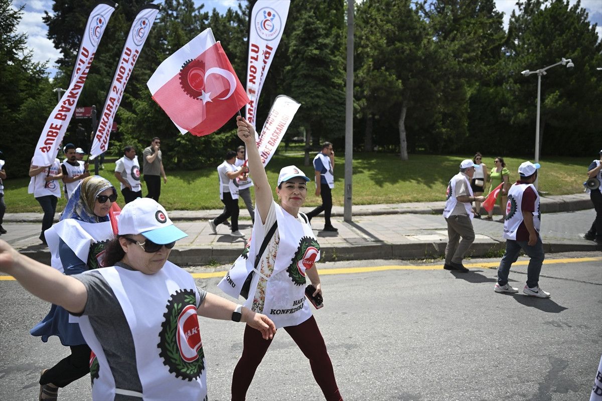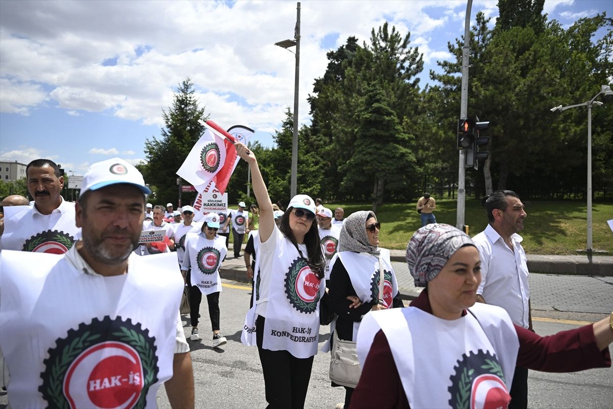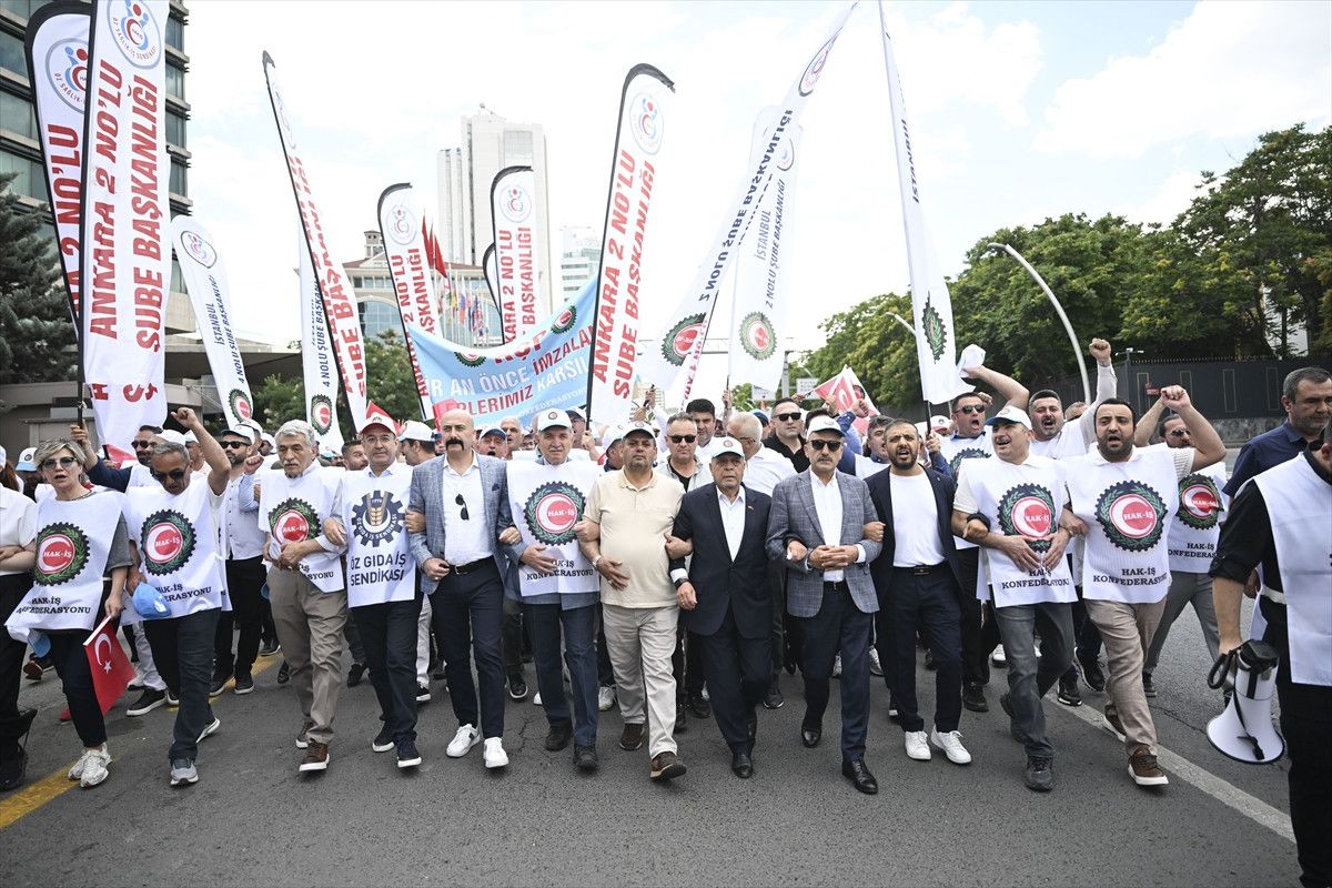 Konuşmanın ardından Arslan ve konfederasyona üye sendika başkanları ile işçiler, ellerinde taşıdıkları pankart ve dövizlerle Hazine ve Maliye Bakanlığına yürüdü.