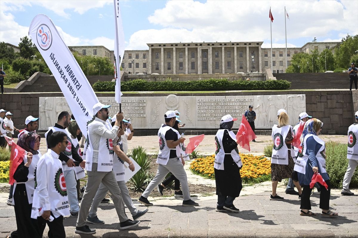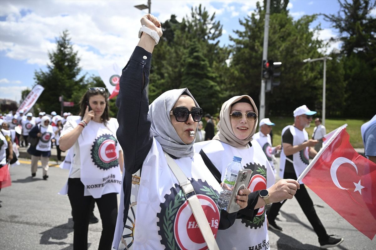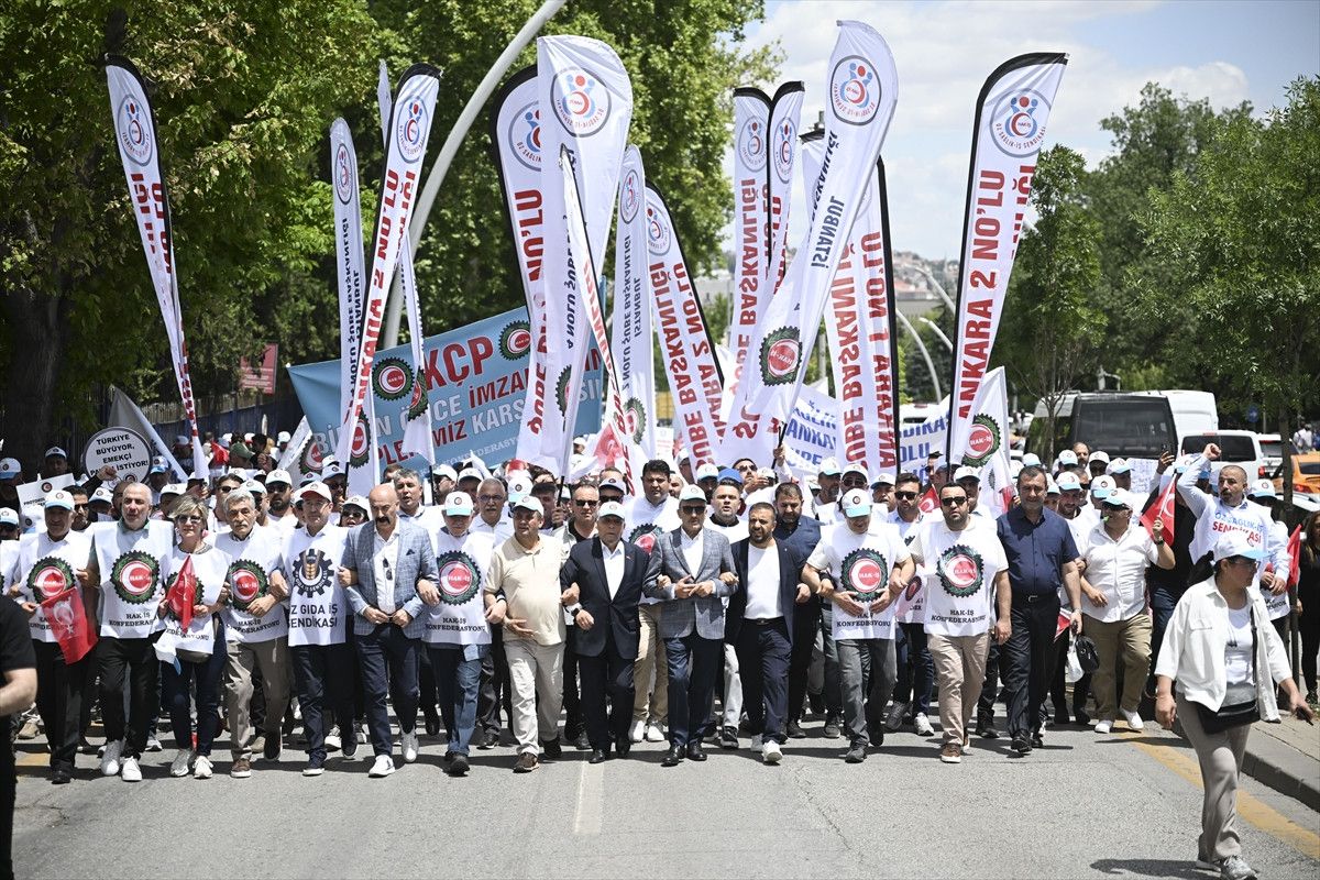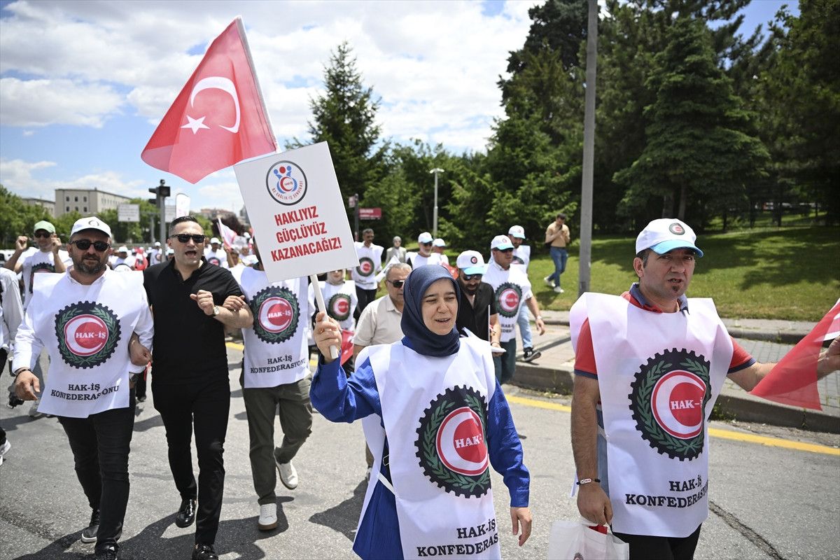 Konuşmanın ardından Arslan ve konfederasyona üye sendika başkanları ile işçiler, ellerinde taşıdıkları pankart ve dövizlerle Hazine ve Maliye Bakanlığına yürüdü.