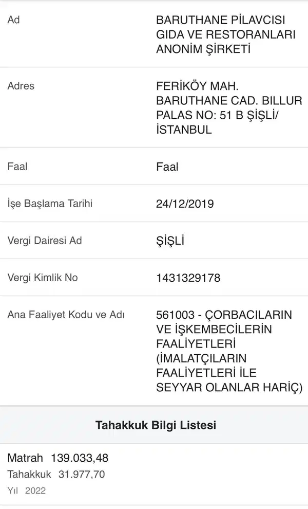 ‘Baruthane Pilavcısı’ olarak bilinen işletmenin sahibi Nedim Şahin ile ilgili geçmişte bazı vergi iddiaları gündeme gelmişti. İddiaya göre işletme, dört yıllık süreçte yalnızca 31 bin 977 TL vergi ödemişti. İşletmenin bilinirliği yüksek olsa da ödenen verginin düşük kalması kamuoyunda tepki yaratmıştı.