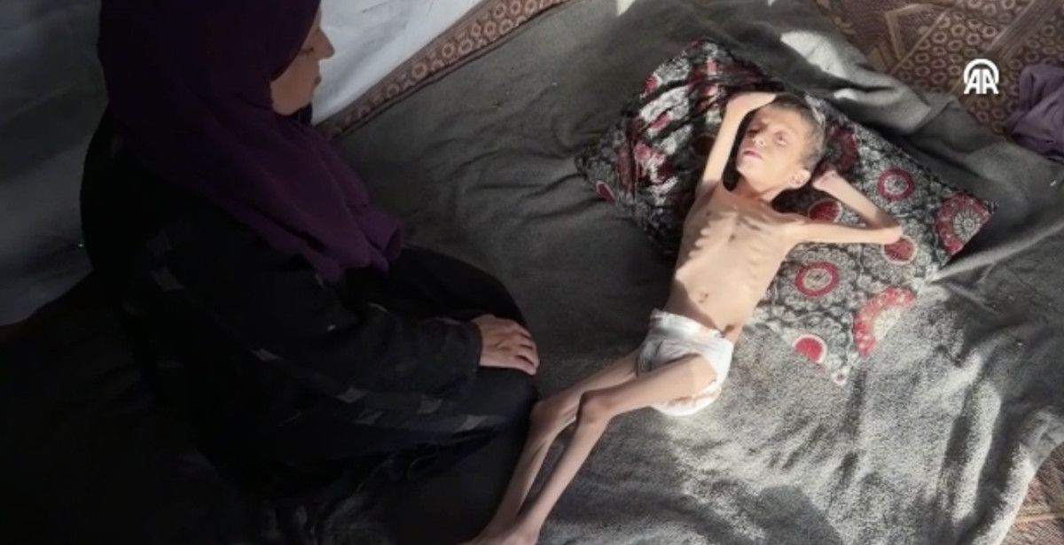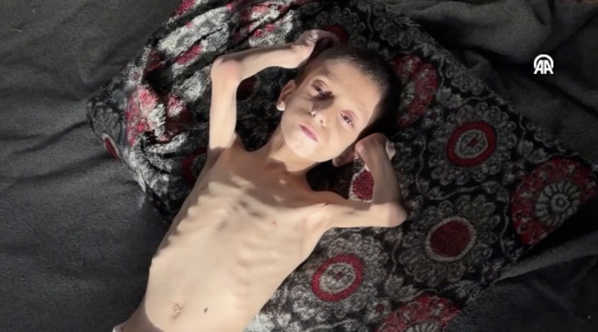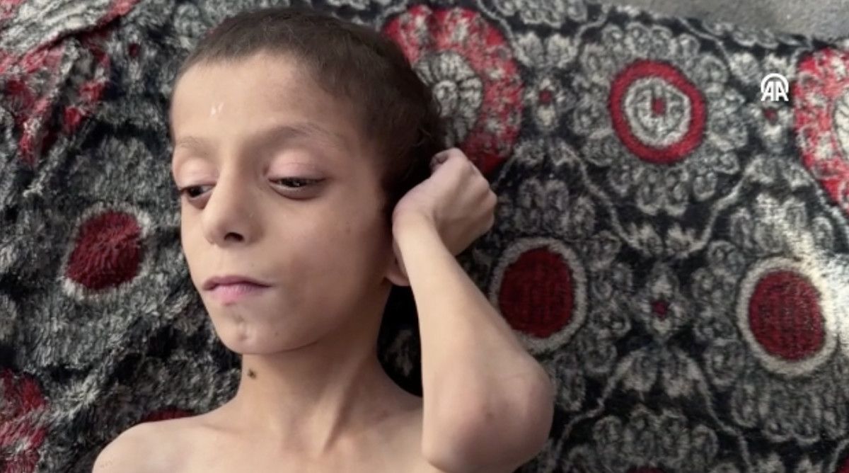 İsrail’in sınır kapılarını kapatıp yardım girişini engelleyerek kıtlığa sürüklediği Gazze’de doğuştan beyin atrofisi (beyin küçülmesi) hastası olan 10 yaşındaki Nafız Muhammed Nasr, açlık ve yetersiz beslenme nedeniyle 8 kiloluk bir iskelete dönüştü.