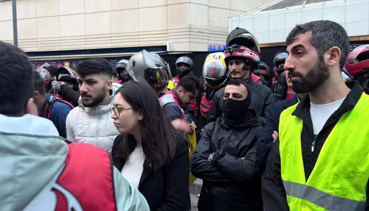 İstanbul’un çeşitli ilçelerinden konvoylar halinde yola çıkan kuryeler, yol boyunca korna çalıp sloganlar atarak şirketin merkezine doğru hareket etti.