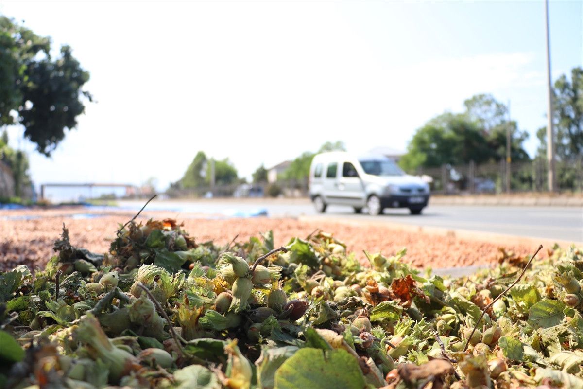 Fındık toplandıktan sonra düz bir zeminde kurutulması gerekiyor ve engebeli arazilerde bu sorunun çözümü yollardaki geniş kaldırımlar oldu.