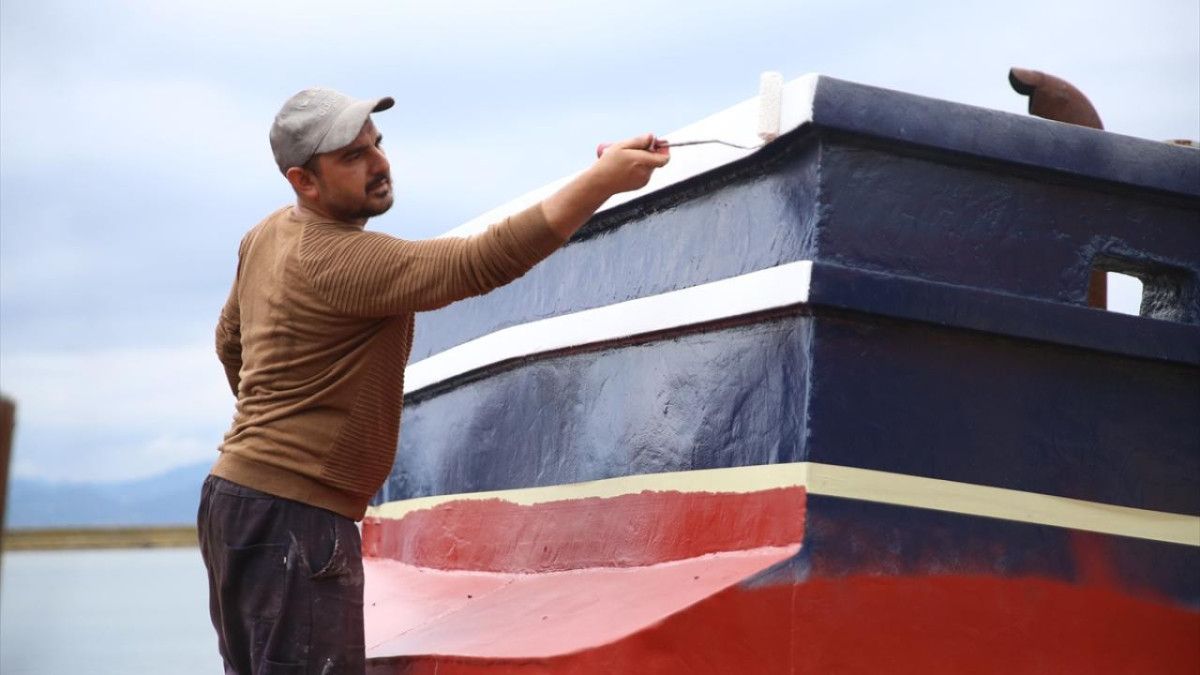 Su ürünlerinde av yasağının başlamasıyla Çarşıbaşı ilçesindeki Yoroz Limanı’na demirleyen balıkçılar, tekne ve ağ onarım çalışmalarının sonuna geldi.