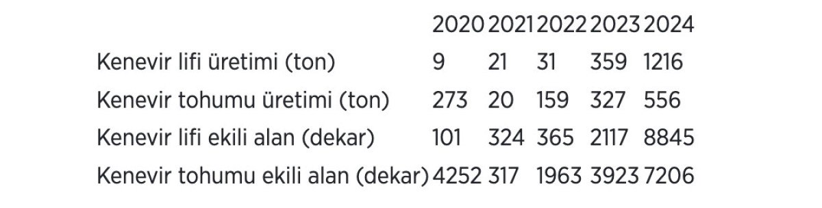Türkiye İstatistik Kurumu (TÜİK) verilerine göre, ülkede kenevir üretimi ve bu alanda yürütülen çalışmalar son dönemde artış gösterdi.