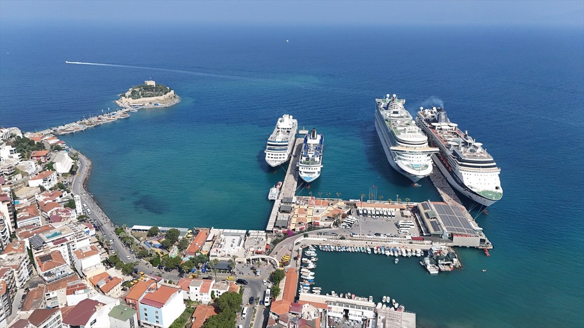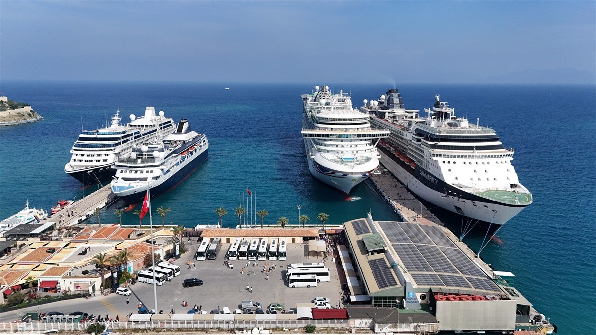 Kruvaziyer turizminin önemli noktalarından Aydın’ın Kuşadası ilçesi, 4 kruvaziyerle gelen 7 bin 427 turisti aynı anda ağırladı.
