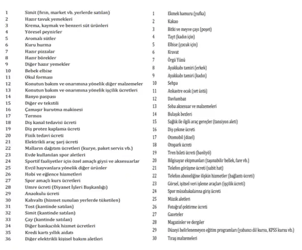 Endeksten çıkarılan ürünler arasında bitki ve meyve çayı, kakao, diş çekme ücreti, otopark ücreti, bilgisayar ekipmanları, spor müsabakalarına giriş ücretleri ve tıraş malzemeleri öne çıkıyor. Eğilmez, bu ürün ve hizmetlerin kullanımının azaldığına dair güçlü bir gösterge bulunmadığını belirtti.