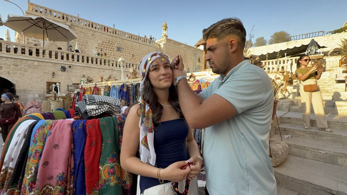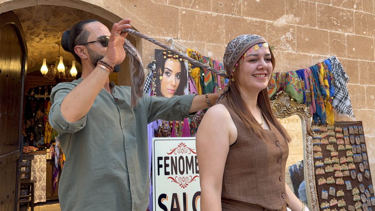 Yöresel şal bağlama işi yapan esnaf Aysel Akgün de “Midyat çok sıcak ama hem Türkiye içinden hem de yurt dışından arkadaşlarımız geliyor. Biz bu durumdan çok memnunuz. Hepinizi bekliyoruz. Berrin arkadaşımız da yurt dışından geldi, şal bağladık ona, kına yaptık. Hepinizi Midyat’a bekliyoruz” diye konuştu.
