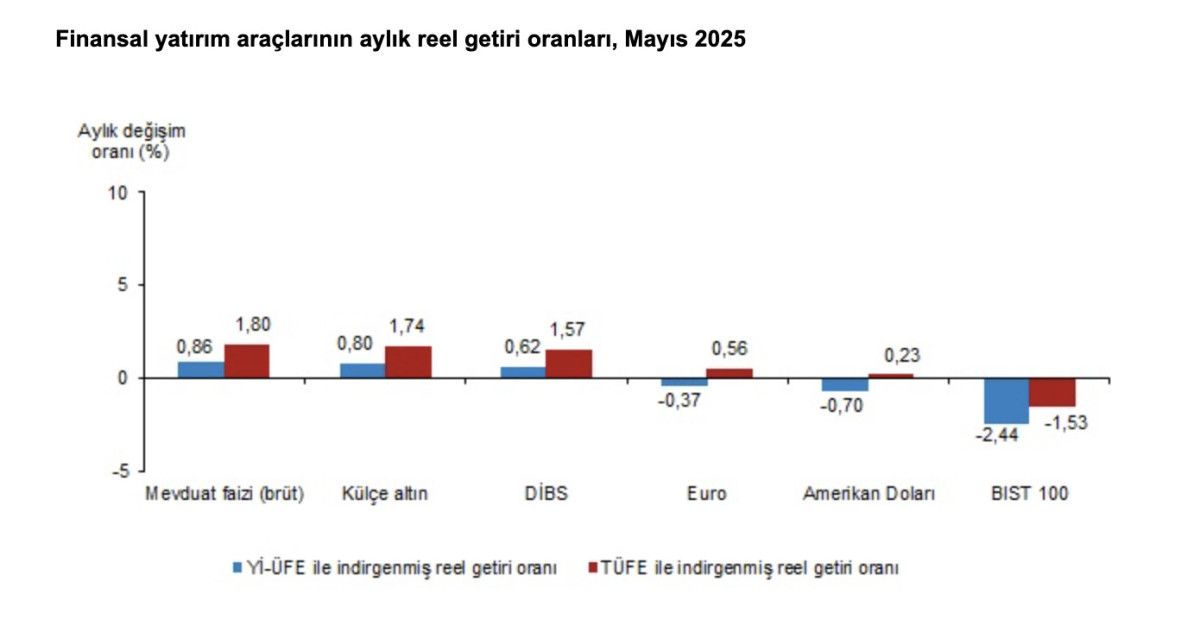 Türkiye İstatistik Kurumu (TÜİK), mayıs ayına ilişkin finansal yatırım araçlarının reel getiri oranlarını açıkladı.
