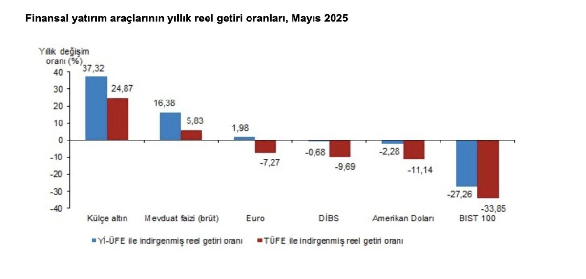 Türkiye İstatistik Kurumu (TÜİK), mayıs ayına ilişkin finansal yatırım araçlarının reel getiri oranlarını açıkladı.