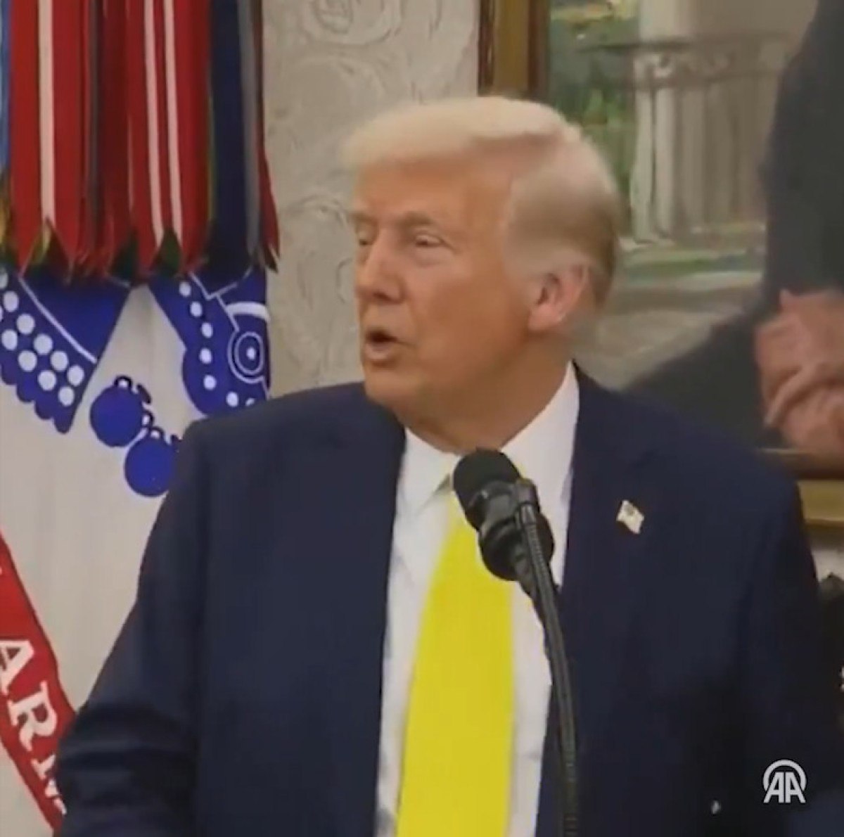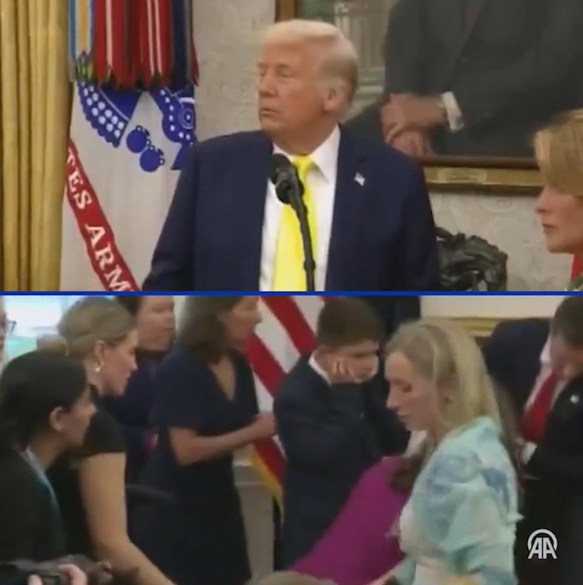 Öz, hemen torununa müdahale ederken, ABD Başkanı Trump konuşmasını yarıda kesti ve ilk refleks olarak basın mensuplarının dışarı çıkması istendi.