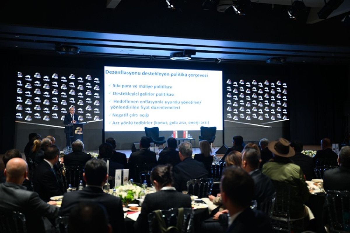 Hazine ve Maliye Bakanı Şimşek, rezervlerdeki ve ülkenin kredi notundaki artıştan, KKM’den çıkıştan, risk primindeki düşüşten, eurobond faizlerindeki gerilemeden bahsederek, “Özel sektör 100 dolar borç ödediğinde sadece 70 dolar bulabiliyordu ve yüksek faizlerle buluyordu. Şimdi 100 dolar borç ödediğinde 165 dolar bulabiliyor ve çok daha düşük faizle. Bütün bu gelişmeler sizin bilançolarınıza dolaylı veya doğrudan yansıyor.” diye konuştu.