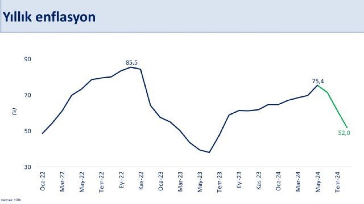 Dezenflasyon belirginleşiyor. Yıllık enflasyon son 3 ayda 23,5 puan gerileyerek yüzde 52 gerçekleşti.