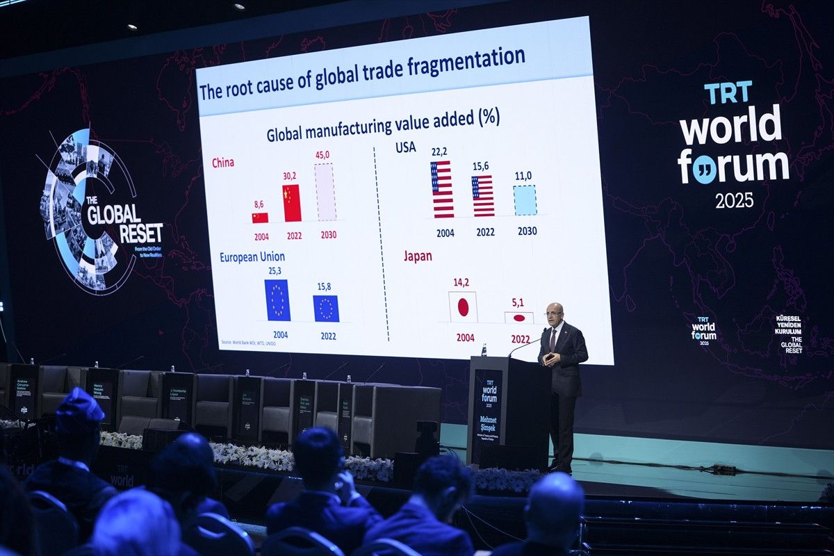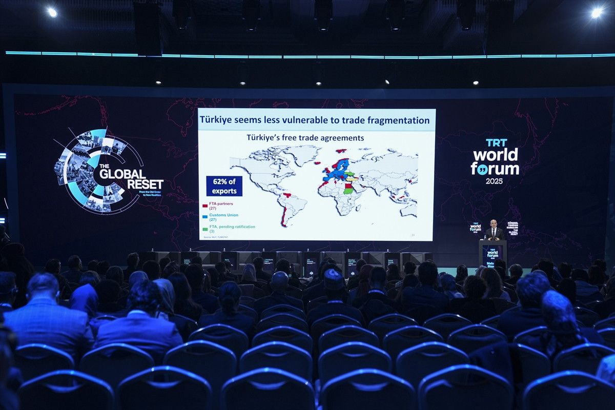 Hazine ve Maliye Bakanı Mehmet Şimşek, İstanbul’da düzenlenen TRT World Forum 2025 programında “Ekonominin Ön Safları: Ticaret Çatışmaları ve Yeni Küresel Rekabetler” başlıklı konuşma gerçekleştirdi.