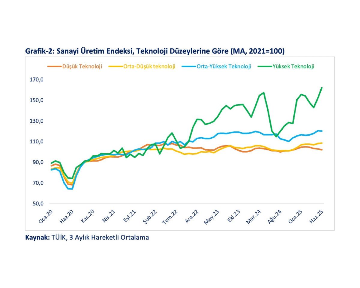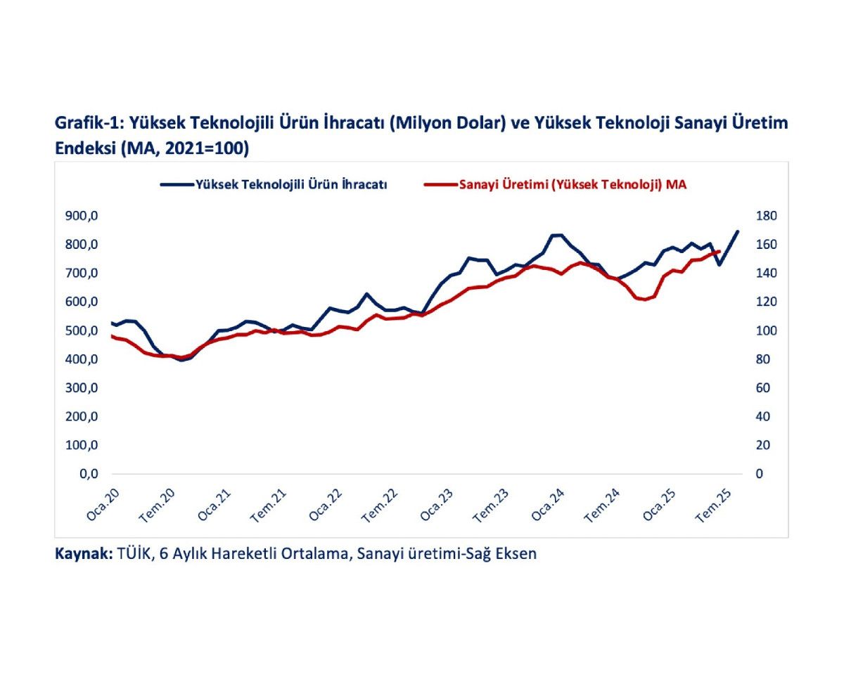 Böylelikle yüksek ve orta-yüksek teknoloji ürünlerinin imalat sanayi ihracatı içindeki payı 2024 yılı Ocak-Ağustos döneminde yüzde 40,1 iken 2025 yılında yüzde 42,5 seviyesine yükselmiştir” ifadelerine yer verdi.