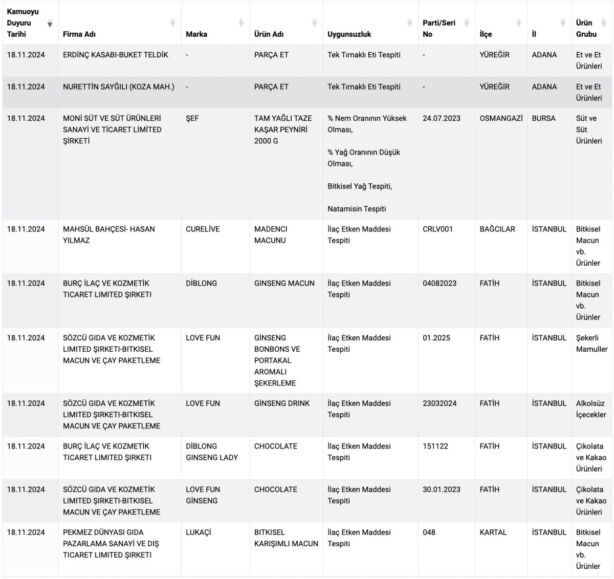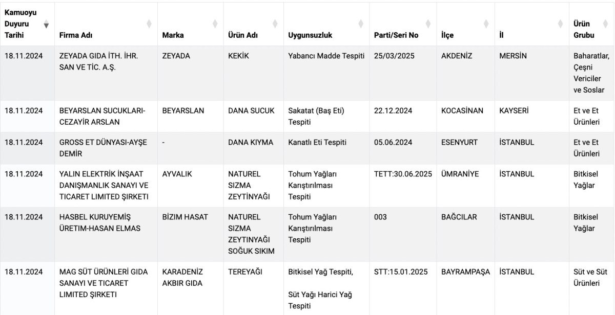 Taklit veya Tağşiş Yapılan Gıdalar listesindeki ürün sayısı böylece 757’ye ve Sağlığı Tehlikeye Düşürecek Gıdalar listesinindeki ürün sayısı ile 151’e yükseldi.