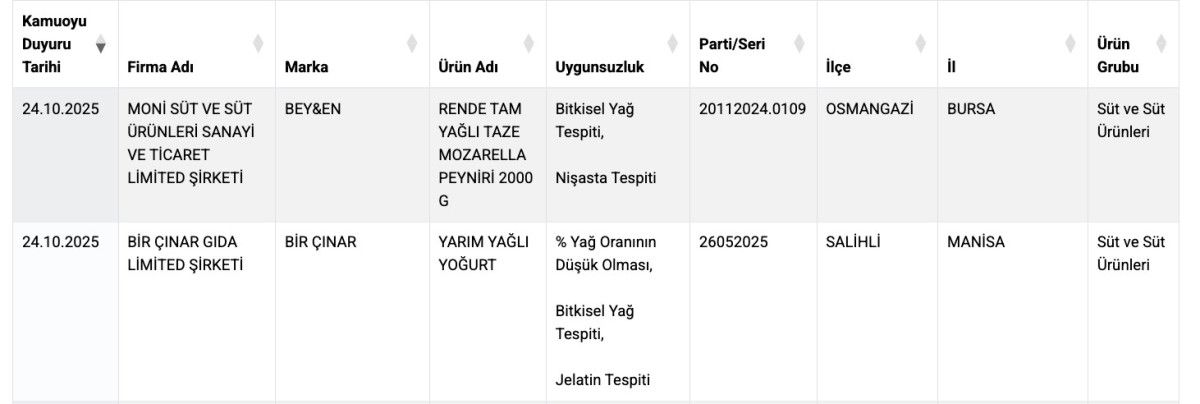 Tarım ve Orman Bakanlığı, Türkiye’nin 81 ilinde yapılan denetimlerin ardından ürünlerinde sağlıksız ürün satan, taklit ve tağşiş yaptığı anlaşılan firmaların listesini paylaşıyor.