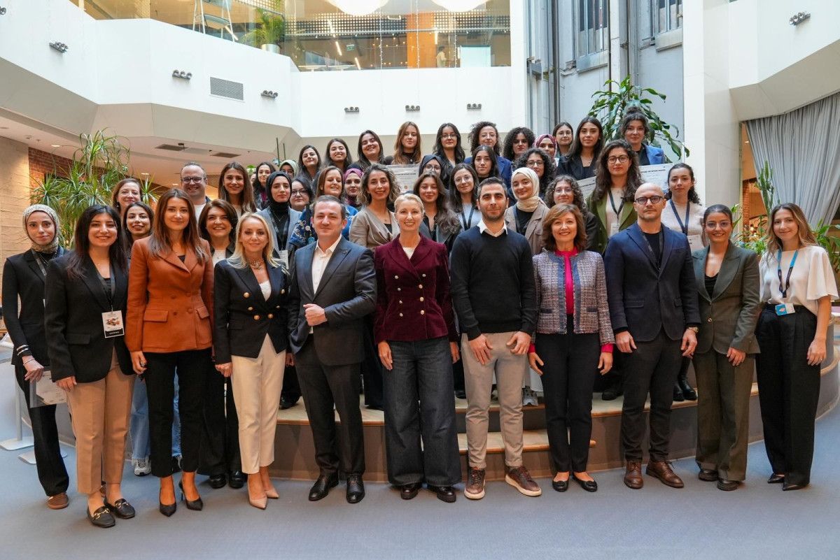 Eğitimi başarıyla tamamlayan kadınlar, Microsoft Türkiye ofisinde düzenlenen mezuniyet töreninde sertifikalarını aldılar.