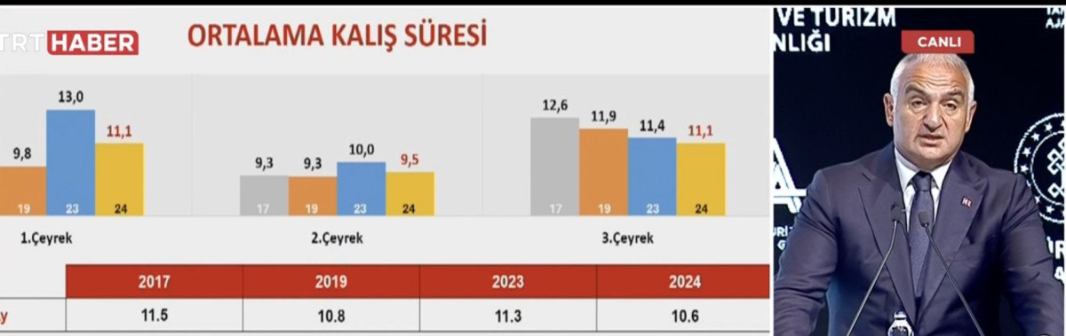 Ortalama kalış süreleri 2024’de 10,6 oldu. Kişi başı turizm geliri gece başına 107 dolar olarak gerçekleşti.