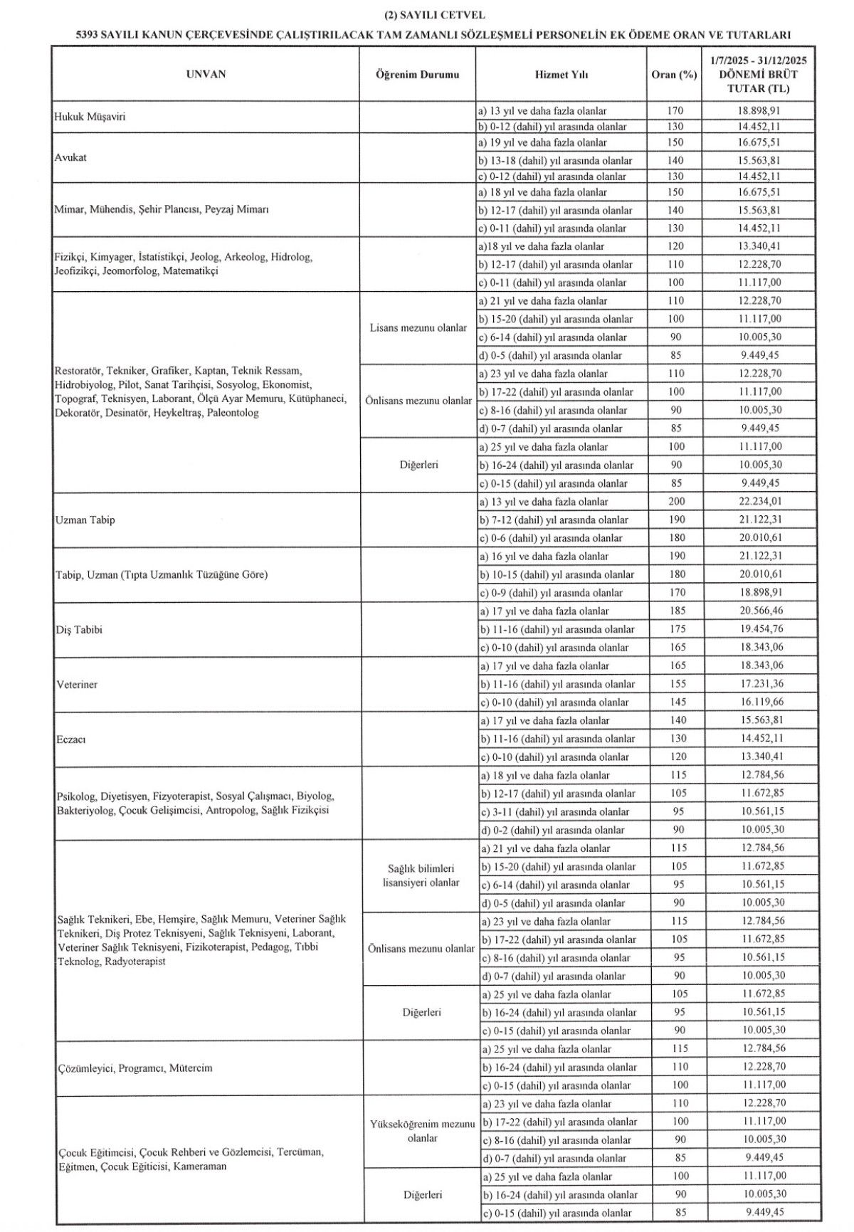 1 Temmuz 2025-31 Aralık 2025 döneminde geçerli olan hesaplama: