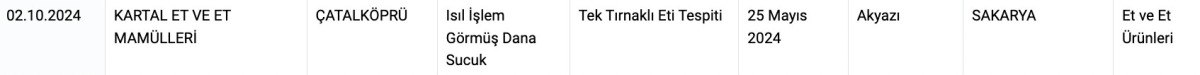 Bu listelerde at eti katılan lahmacun harcı, eşek eti karıştırılan Adana kebap, domuz eti karıştırılan tas kebabı, döner ve köfteye rastlandı.