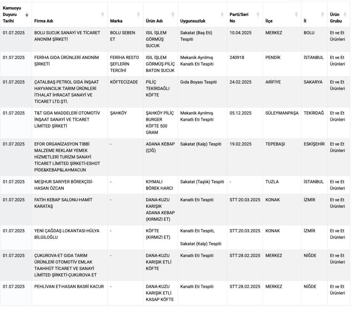 Tarım ve Orman Bakanlığı’nın taklit ve tağşiş yapılan ürünleri teşhir etmek için yayımladığı listelere yeni ürün ve işletmeler eklendi.