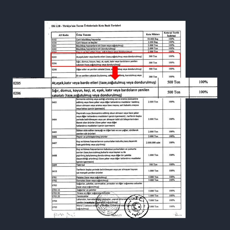 İstanbul Planlama Ajansı Başkanı Buğra Gökçe’nin X hesabından duyurduğu bilgilere göre; anlaşma kapsamında Türkiye Sudan’dan yapılacak 500 ton at, eşek veya 500 ton domuz eti ithalatında vergi almayacak.