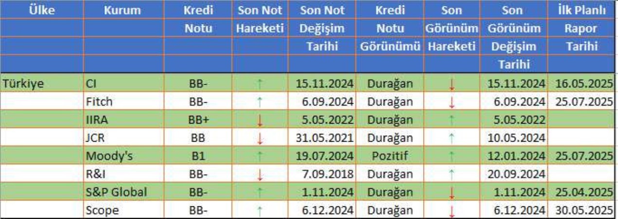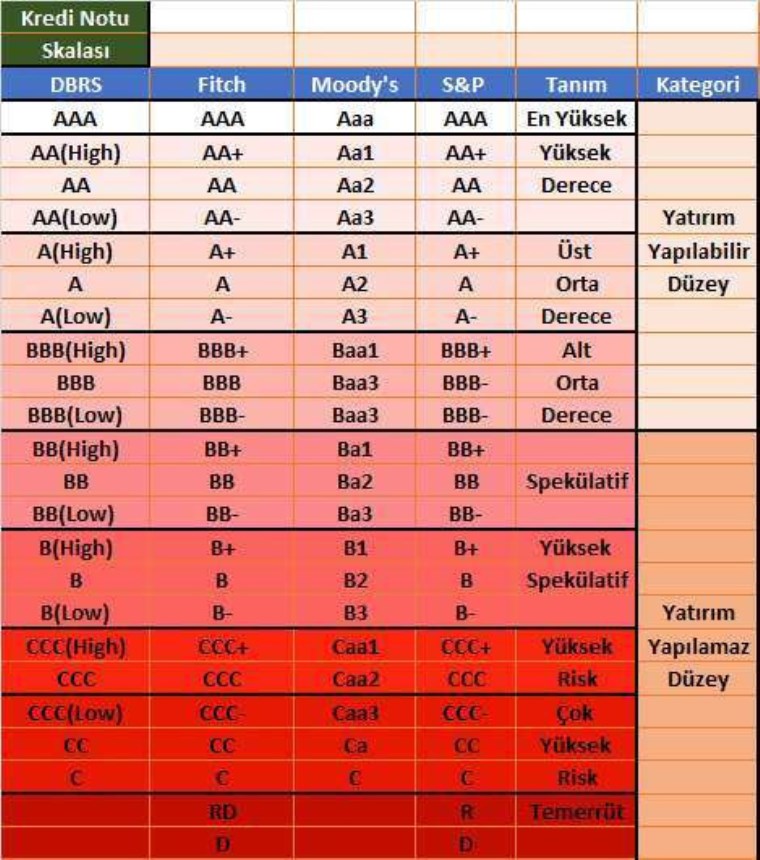 TÜRKİYE’NİN KREDİ NOTU TABLOSU