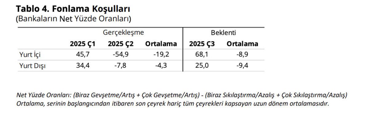 Banka Kredileri Eğilim Anketi’nde, yılın üçüncü çeyreğinde yurt içi ve yurt dışı fonlama koşullarının belirgin bir şekilde gevşemesi bekleniyor.