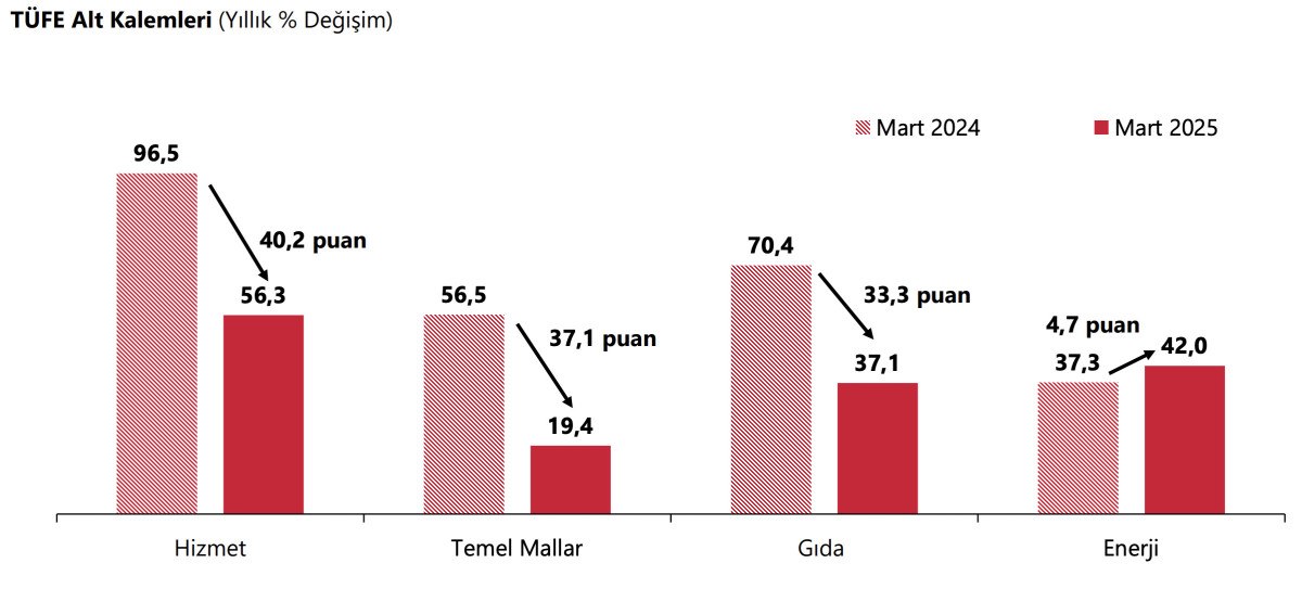 Geçmişe endeksleme eğilimi güçlü kalemler, hizmet enflasyonunu yukarı çekmektedir. Mal enflasyonundan sonra hizmet enflasyonundaki düşüş de belirginleşmektedir. Enflasyonun ana eğiliminde ilk çeyreğe özgü bir yükseliş gözlenmiştir.