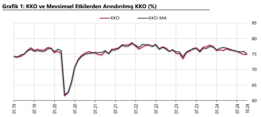 Mevsimsel etkilerden arındırılmamış KKO ise, bir önceki ay ile aynı kalarak yüzde 74,9 olarak açıklandı.