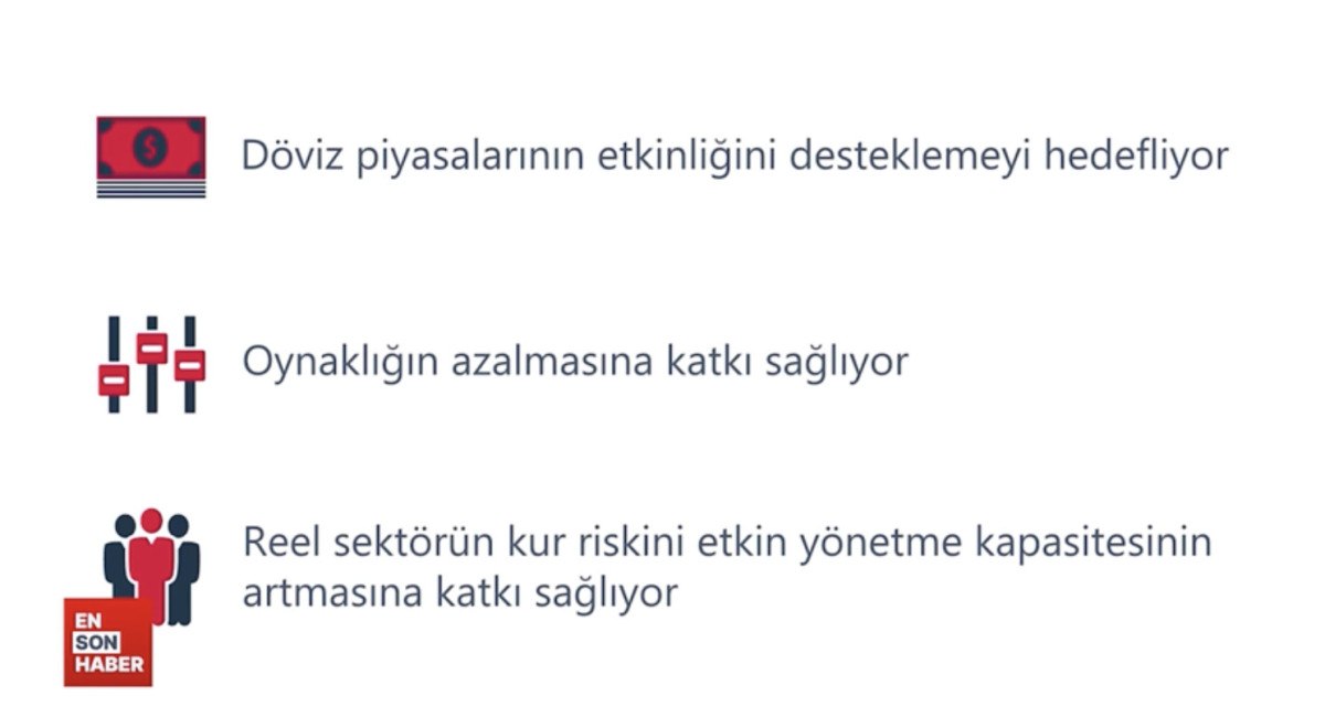 Bununla birlikte videoda, Merkez Bankasının, NDF’ler yoluyla kurlarda gözlenen oynaklıkları azaltarak döviz piyasalarının etkinliğini desteklemeyi hedeflediği, bu sayede reel sektörün kur riskini etkin yönetme kapasitesinin artmasına katkı sağlamayı amaçladığı kaydedildi.