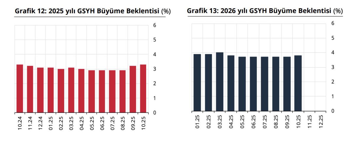Katılımcıların GSYH 2025 yılı büyüme beklentisi bir önceki anket döneminde yüzde 3,2 iken, bu anket döneminde yüzde 3,3 olarak gerçekleşti.